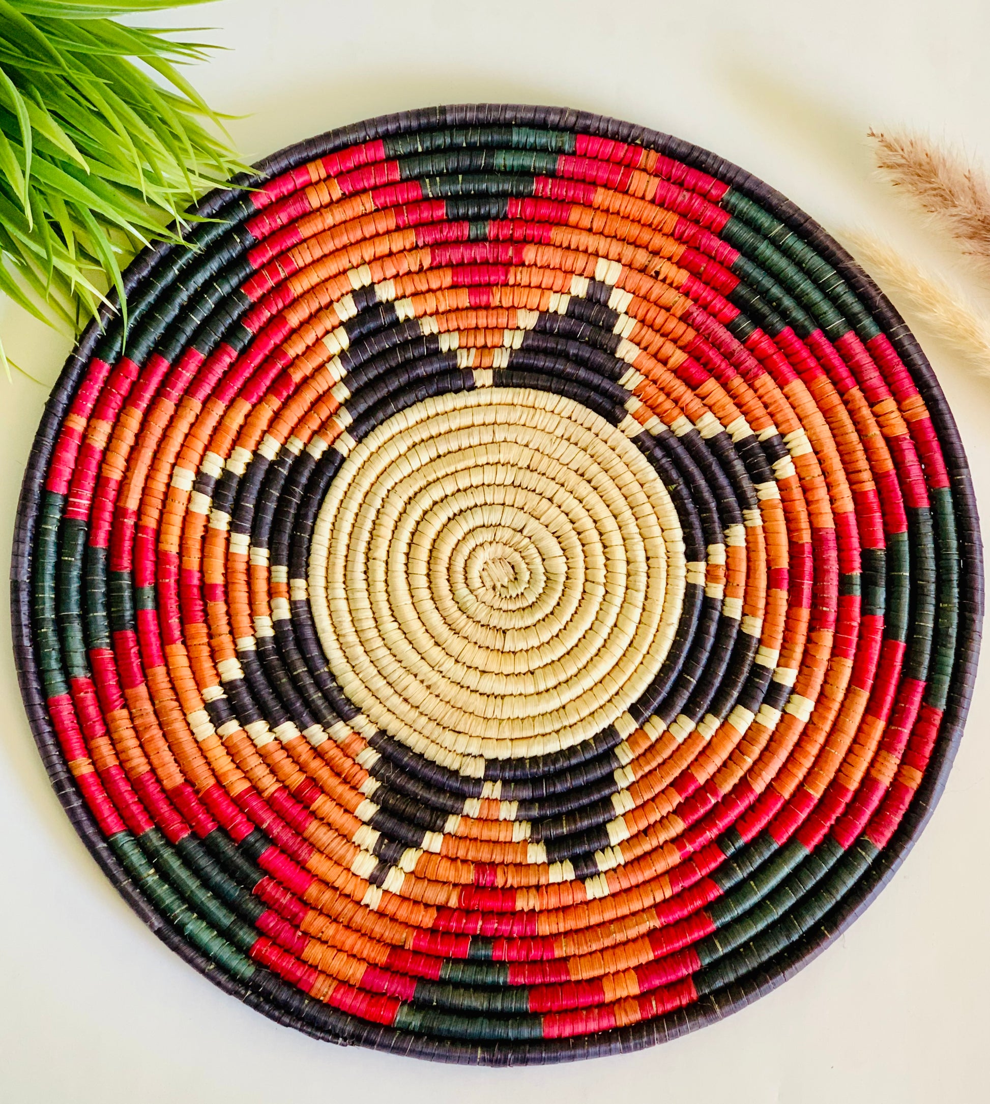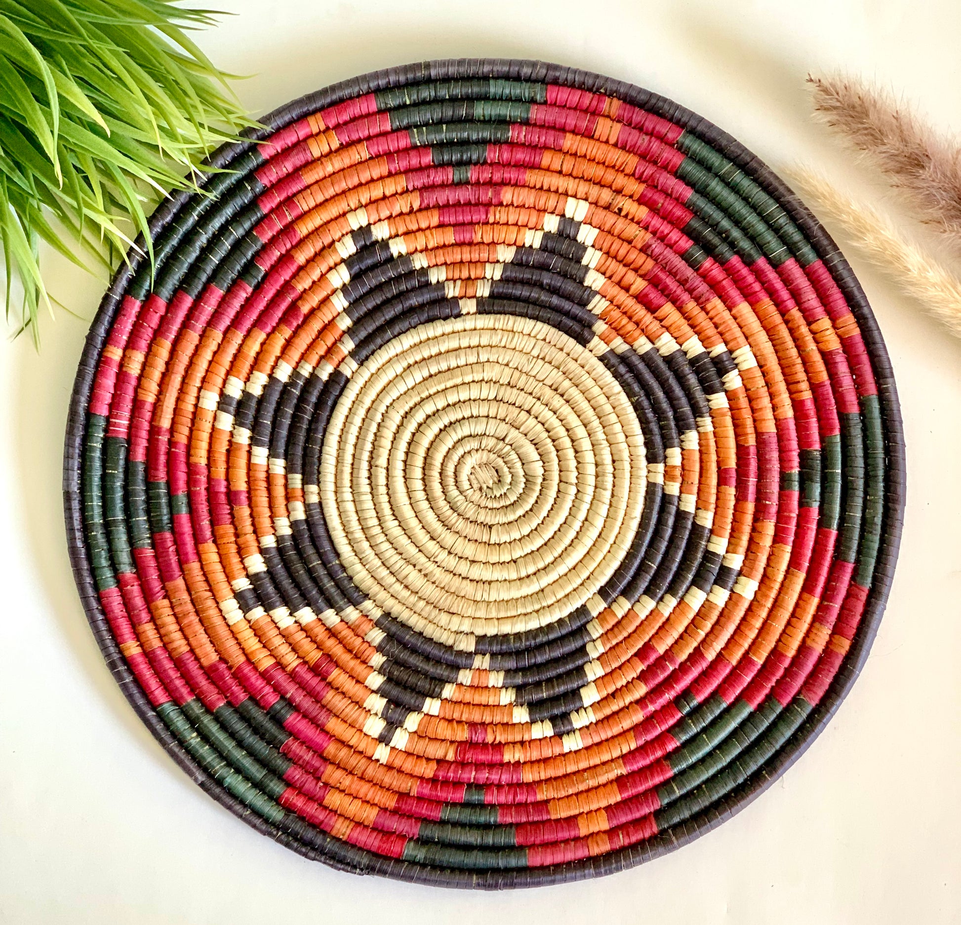 Assorted Naturally Dyed Date Leaf Placemat, African Handmade Plates, Eco-Friendly Wall Art, Boho Wall Decor, Wall Hanging Place Mat, Hot Plate