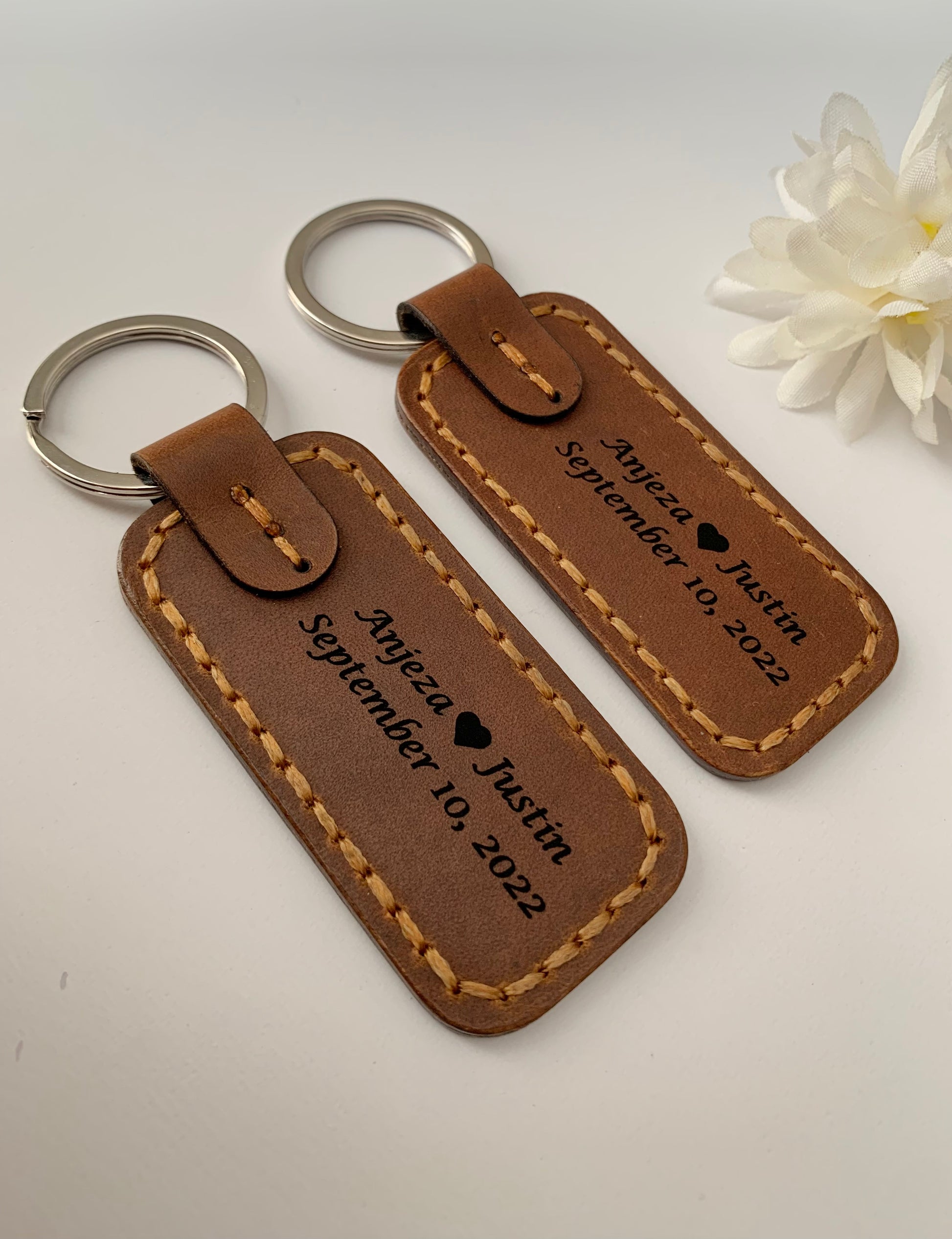 Personalized Engraved Leather Keychain, Couple Gift